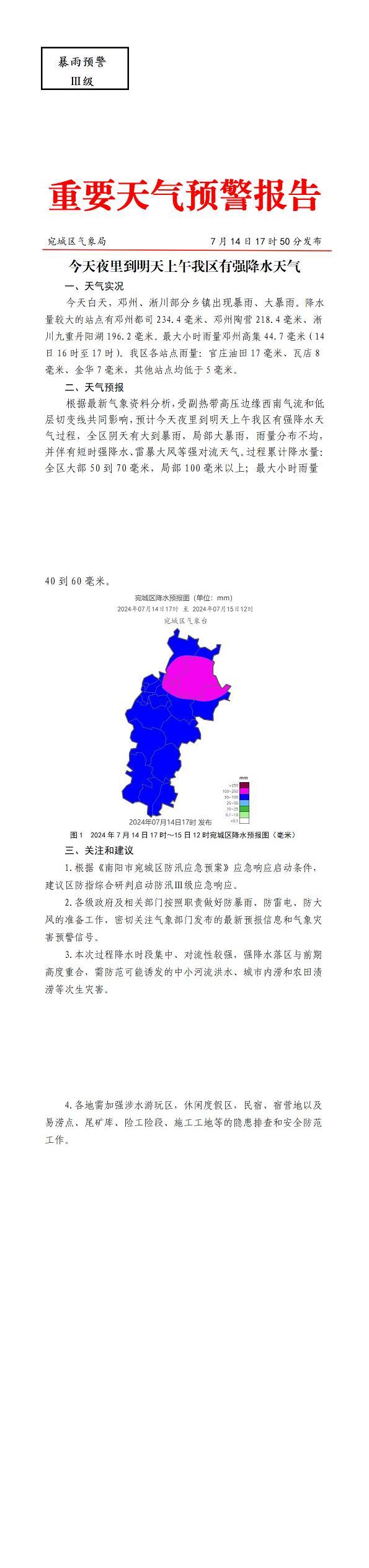 宛城区重要天气预警报告20240714-暴雨Ⅲ级
