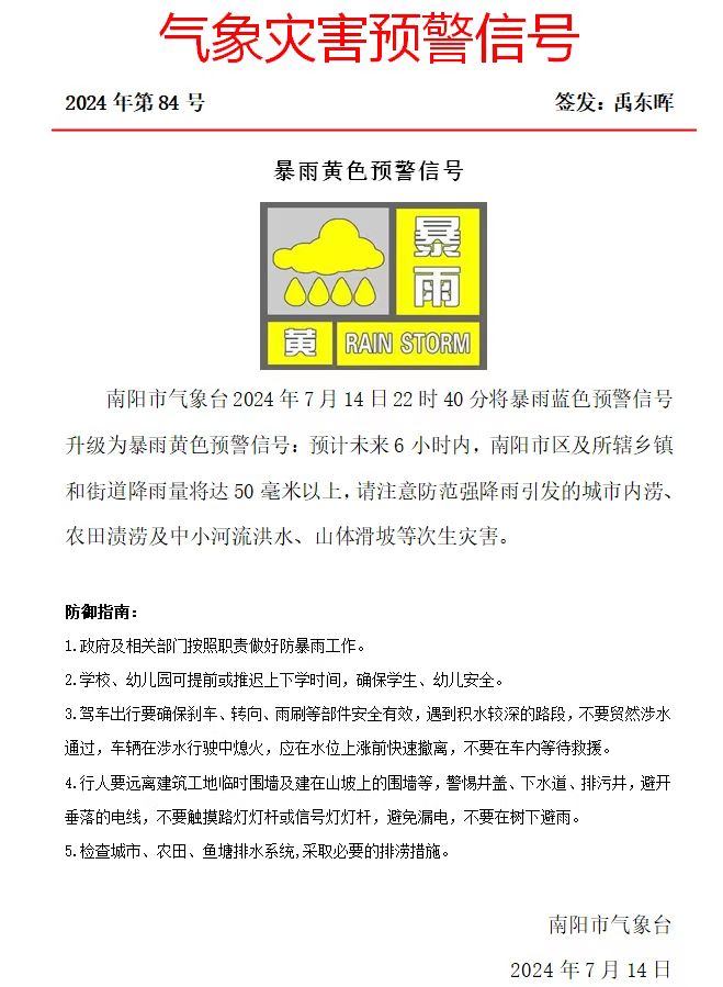 气象灾害预警信号7月14日