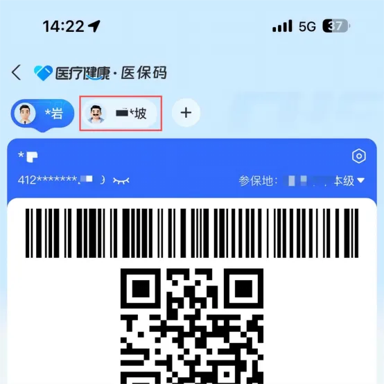 4.按提示的要求验证并绑定成功后,即可在医保码二维码界面选择亲属头像,代替其展示医保点电子凭证及进行医保结算等操作。