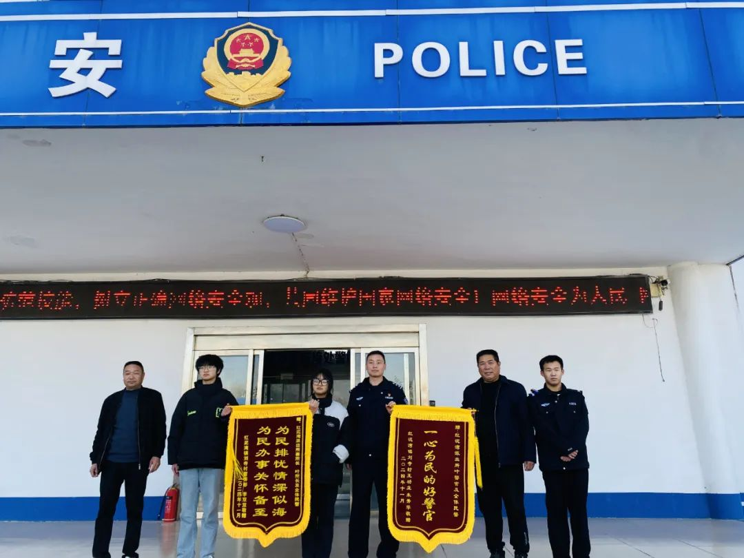 “要不是咱们民警同志的及时救助,真不敢想象会发生什么,谢谢民警救了我儿子的命。”12月13日上午,在红泥湾派出所值班室,王大爷回忆起当时的场景心有余悸地说道。当天晚上,正在驾车巡逻的红泥湾派出所民警叶振朋突然被两名老人拦了下来。“警察同志,请你救救我儿子,请你救救他!”民警停下车后,两位老人紧张地拉着民警的手求助道。原来王大爷的儿子开车外出接孙子放学后就一直未归,电话也一直无人接听。于是王大爷老两口便沿途寻找,并在红泥湾镇附近的国道上发现了自家开着双闪停在路边的汽车,老两口上前查看时,发现儿子发病昏迷在驾驶室内,隔着车玻璃呼叫儿子半天没有反应,刚好看到有警车经过,于是拦下警车报警求助。由于情况紧急,民警叶振朋经得王大爷同意后,果断利用警棍破窗,随后顾不上被划伤的手背,成功将王大爷的儿子救出,并将其送往医院,由于救助及时,王大爷的儿子转危为安。待儿子康复后,王大爷便制作了一面写着“一心为民的好警官”烫金大字的锦旗来到派出所,向民警表示感谢。“警察同志,再次感谢你们替我找回了宠物犬,我养了很多年,就像家人一样,谢谢你们!”12月13日,辖区群众李女士将一面印有“为民排忧情深似海,为民办事关怀备至”的锦旗送到红泥湾派出所民辅警手中,感谢民辅警及时帮其找回宠物犬。原来,李女士家有一条养了数年的拉布拉多犬,不知道什么原因走丢了。接到报警后,民警仔细地询问宠物狗的外貌特征,丢失的时间、地点等信息。随即民警立即开展寻找工作,通过群众描述疑似丢失的地点开展寻找,同时走访附近居民,查找狗狗的踪迹,经过数小时的努力寻找,终于在邻村找到丢失的宠物。当李女士看到自己失而复得的爱犬后,激动地流下了泪水,不停地感谢民警。另外,在寻找李女士爱犬的同时,民警还了解到李女士和邻居有一些小纠纷,就以此次机会为契机,帮助李女士和邻居化解了矛盾纠纷,赢得了双方的一致称赞。