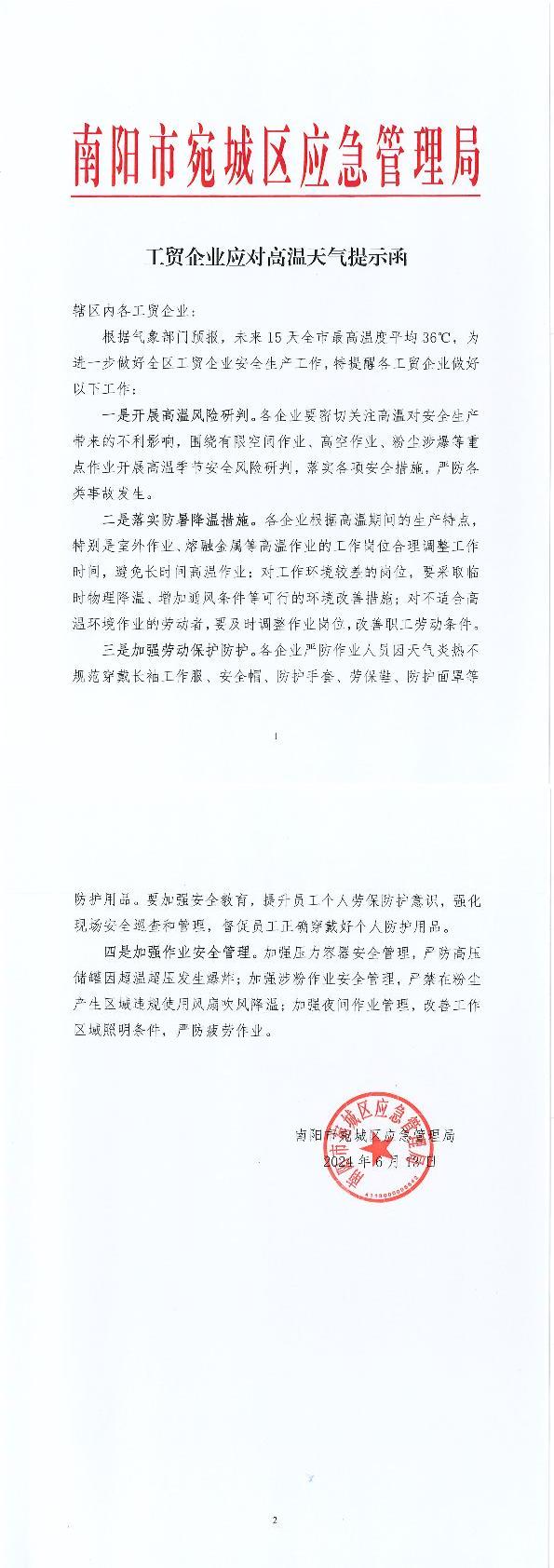 工贸企业应对高温天气提示函