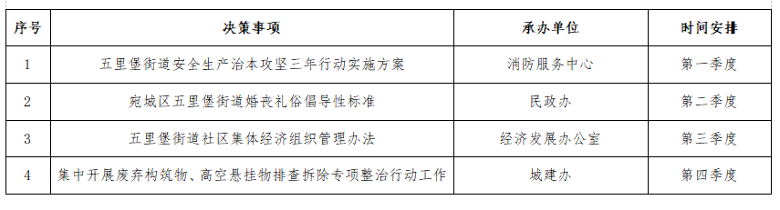 宛城区五里堡街道2024年度重大行政决策事项目录