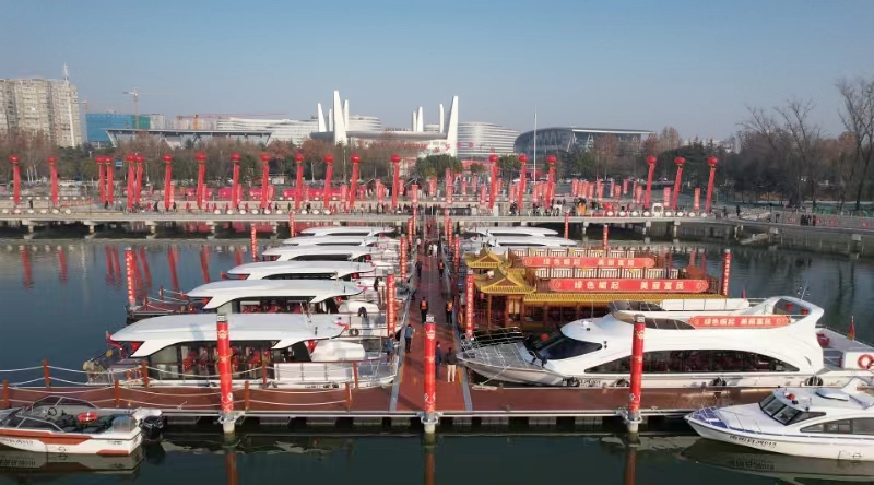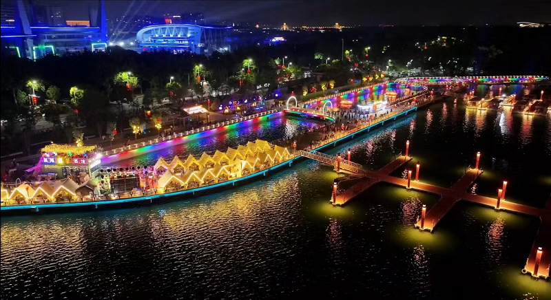这里已经成为了集水上观光娱乐、灯光声乐展览、民俗演绎、非遗文化主题活动体验、亲子研学、特色美食、游艇俱乐部下午茶、商业旅游于一体的南阳城市文化旅游潮玩新地标。