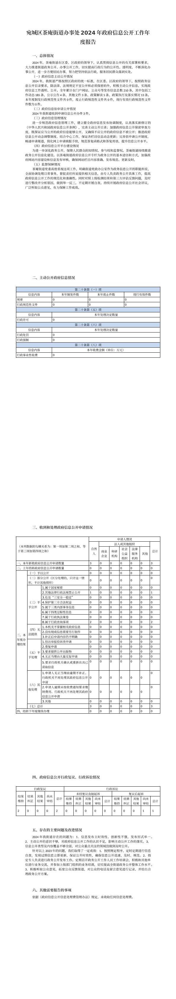宛城区茶庵街道办事处2024年政府信息公开工作年度报告