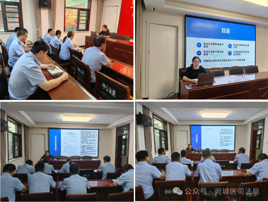 培训中,宣讲员陆玉对照《河南省行政处罚文书格式范本(2024年版) 》《河南省行政执法案卷立卷规范》,逐一讲解了行政处罚文书的制作及案卷组卷等业务知识,并根据乡镇综合执法实际情况,针对如何做好服务型行政执法工作与大家进行探讨交流,结合最近服务型行政执法的典型案例,就如何提升基层行政执法人员对服务型执法的知晓度和认同度等方面进行了讲解,使基层执法人员进一步转变了执法理念,引导执法人员树立管理、执法和服务相互融合、相互促进,加深对服务型行政执法的理解和认识。