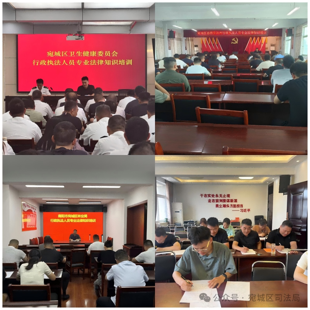 精心梳理,编制培训汇编。为确保学习培训有效进行,区司法局组建专班对现行有效行政执法方面公共法律知识进行了全面梳理,涵盖法治建设、行政处罚、行政许可、行政强制、行政诉讼、行政复议、两法衔接及行政执法证件管理、三项制度、自由裁量、执法责任制、综合执法改革、执法文书范本、立卷规范、案卷评查等多个方面业务知识,编发了《宛城区行政执法公共法律知识汇编》;各单位也对本行业本系统法律知识、业务技能知识同步进行了梳理,并统筹政治理论知识、公共法律知识制定了本单位学习计划,对标对表精准施训、全方位为执法人员“充电赋能”。