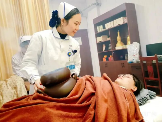 在该门诊部,护士长马正娇正耐心为患者进行火龙罐技术操作。她介绍,“火龙罐是在罐内点燃艾条后,将推拿、艾灸、刮痧这三种疗法结合,操作时会根据不同部位和病症,运用揉、碾、推、按、点、摇、闪、震、熨、烫10种手法,让热力与手法完美结合,达到温、通、调、补的作用。”除火龙罐外,还提供温阳罐、平衡火罐、督脉灸、脐灸、耳穴压豆、穴位贴敷、中药热敷等10余项中医特色护理服务,基本涵盖了群众常见病、慢性病的中医外治需求。