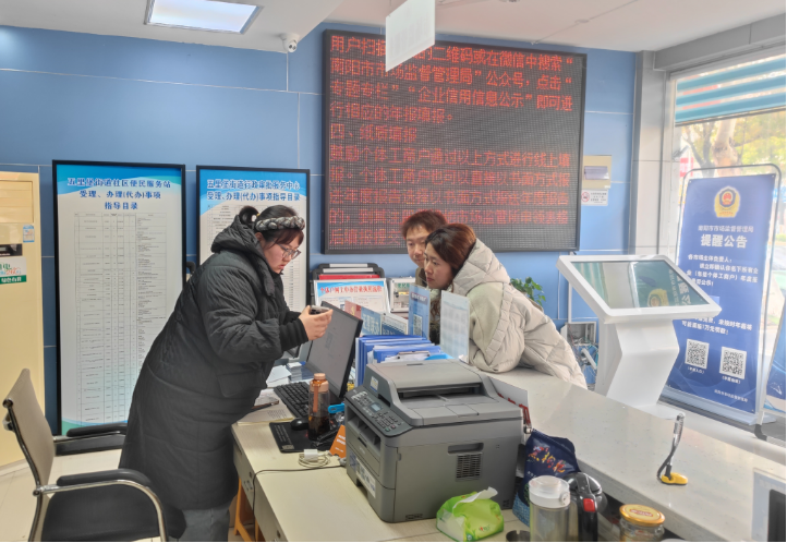 “本以为办营业执照、报年报要折腾好几趟,没想到在党群服务大厅工商登记窗口,一会儿就全办妥了,工作人员太贴心了!”近日,在宛城区五里堡街道党群服务中心为民服务大厅工商登记窗口,刚办完营业执照变更并报送完年报的个体工商户王师傅感慨道。作为服务个体工商户的前沿阵地,该登记窗口始终聚焦“便民、高效、暖心”核心目标,针对个体工商户办理营业执照、报送年报的高频需求,不断优化服务流程、创新服务举措,助力辖区个体工商户“轻装上阵”。
