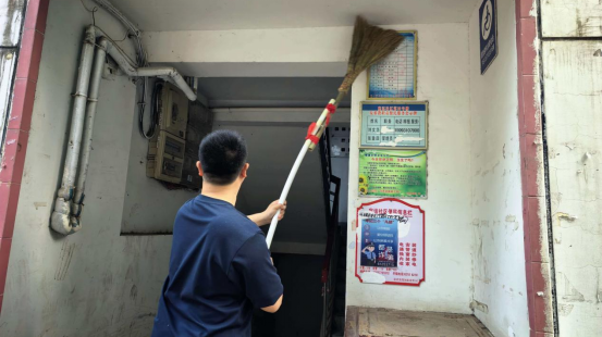 “大叔,楼道里堆东西既挡路又不安全,咱们以后别往这儿放啦”“阿姨,这些小广告又乱又难看,咱们一起抵制,才能守住咱们的干净家园”。整治现场,大家边干边和路过的居民拉家常、传知识,没有生硬的说教,全是贴心的提醒,慢慢引导大伙儿明白文明居住的道理,也带动越来越多的居民主动加入进来,有的帮忙递工具,有的主动清理自家门口的杂物,真正形成了“人人关心环境、人人参与整治、人人守护家园”的热闹氛围。